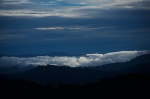 The sun’s rays light up the cloud as they spread over the valleys near Almora.